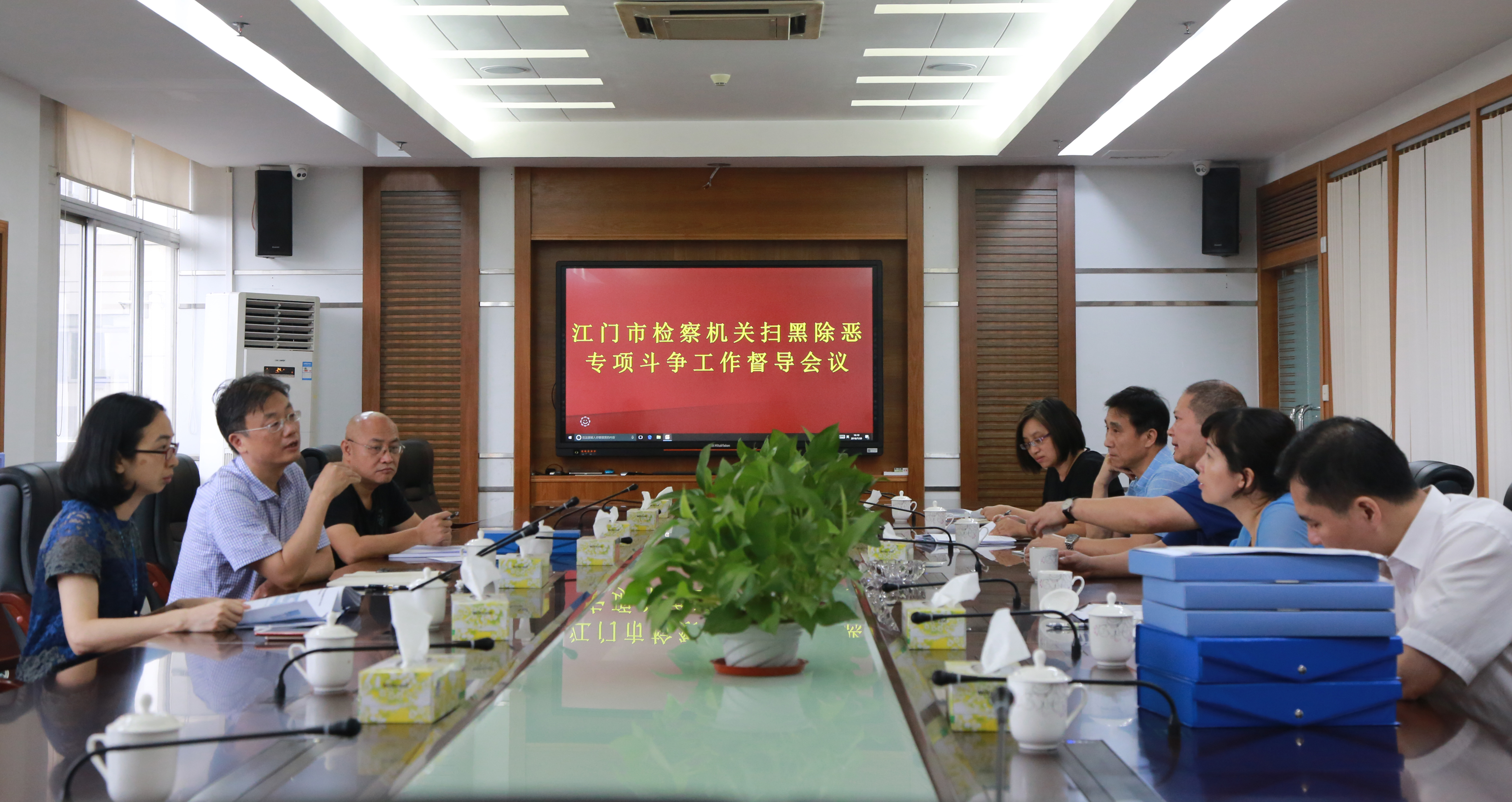 7月20日下午,江门市人民检察院党组成员、副检察长陈锡章到我院督导扫黑除恶专项斗争工作,并与我院扫黑除恶领导小组成员及各下设工作组负责同志进行座谈。