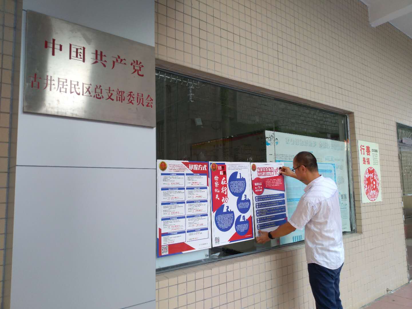 传统模式:悬挂扫黑除恶宣传横幅和张贴扫黑除恶宣传海报