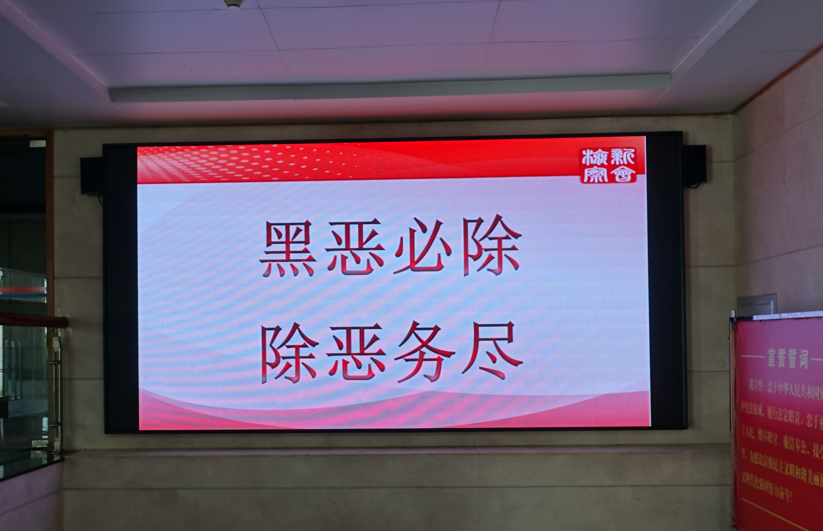 技术升级:LED屏循环滚动播放扫黑除恶宣传标语