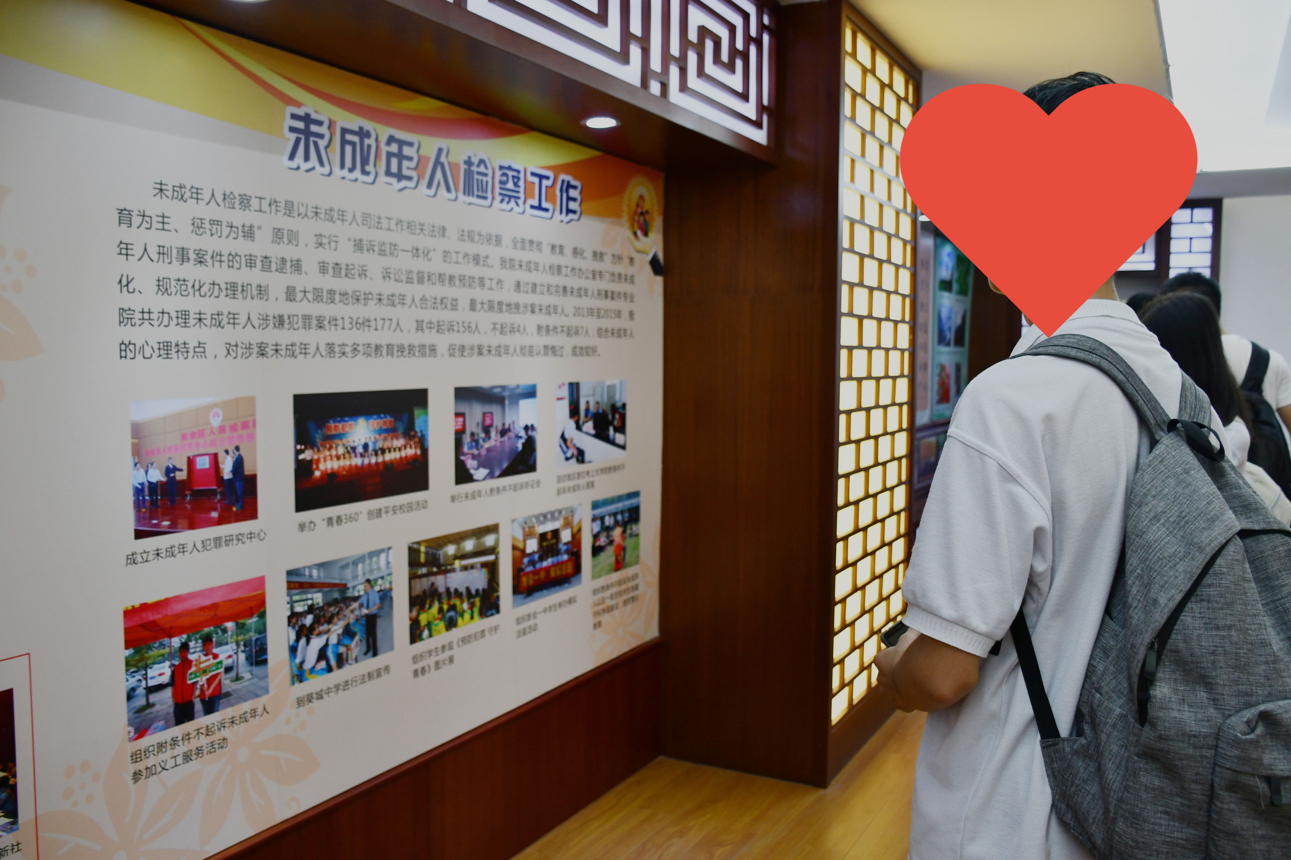此外,检察官鼓励小伟通过面试加入学校志愿服务队,积极参与景堂图书馆2018年世界读书日活动志愿服务,在活动中为小朋友们讲述绘本故事,还通过角色扮演的方式将故事绘声绘色地演绎出来。小伟还参加了社工机构与校社联举办的检察院实践活动,在观看法制展览时,他非常专心,收获颇大。