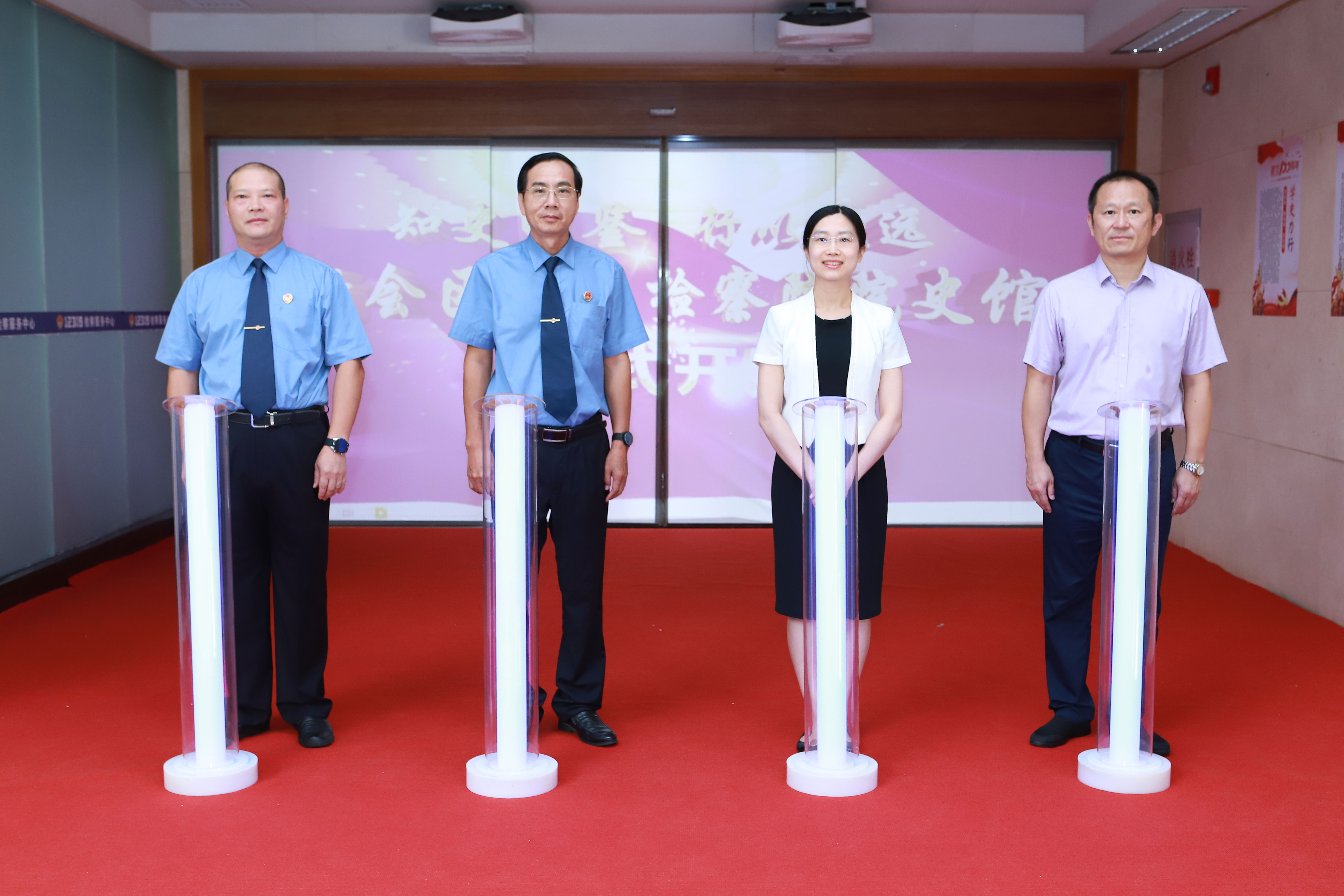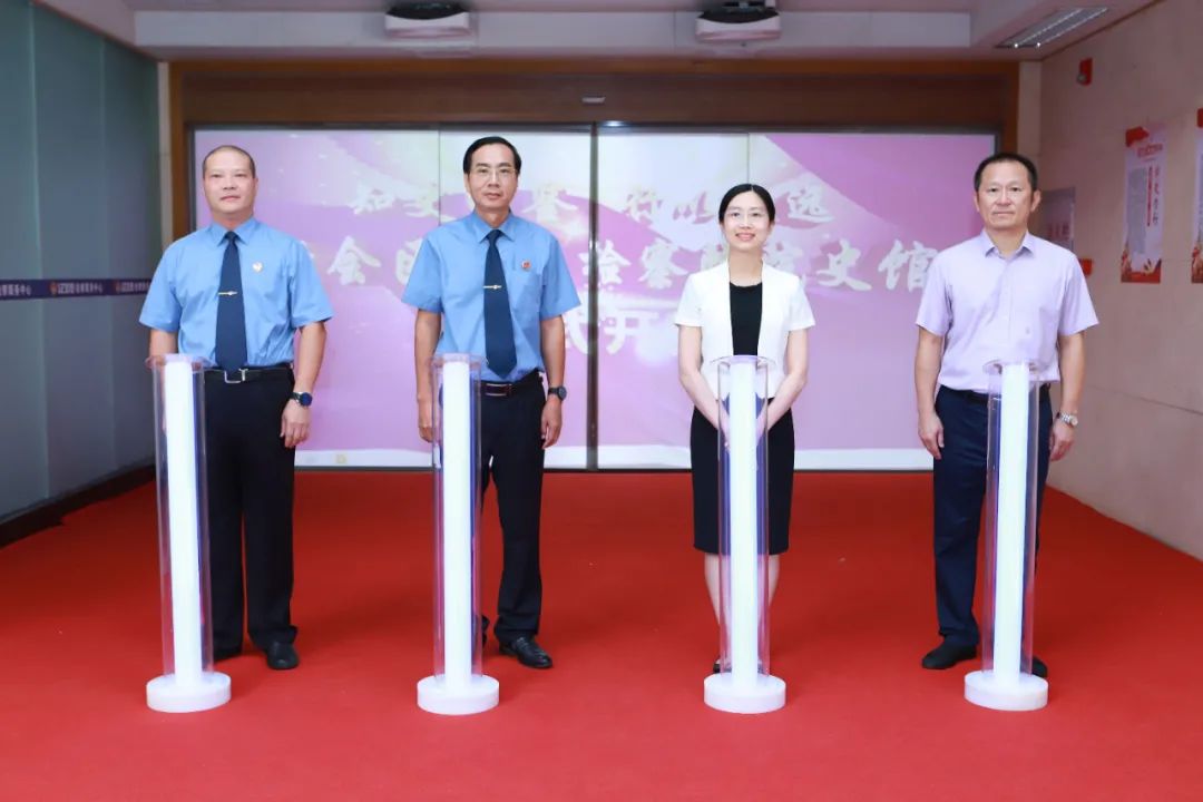 江门市检察院党组成员、副检察长林慕恒,新会区委常委、宣传部部长颜海娜,新会区检察院党组书记、检察长徐宏康,新会区委政法委常务副书记叶永成启动开馆仪式